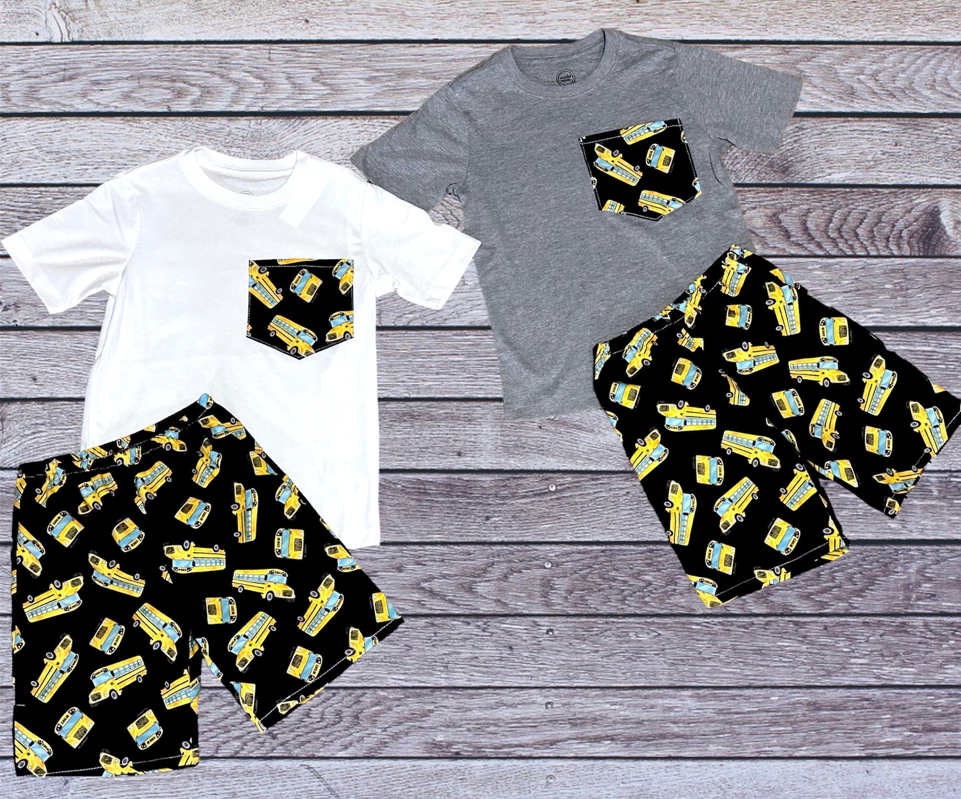 School Bus Gray Pocket T-shirt shorts Set size 4T/5T