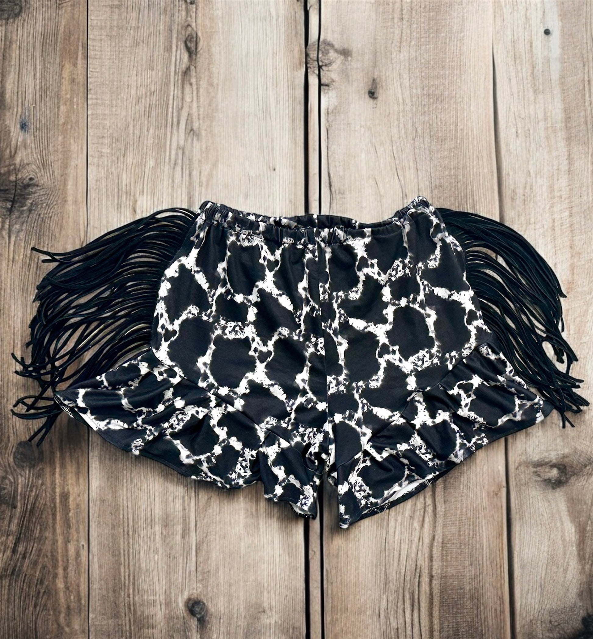 Fringe Cow Print Ruffle Shorts Size 4T/5T