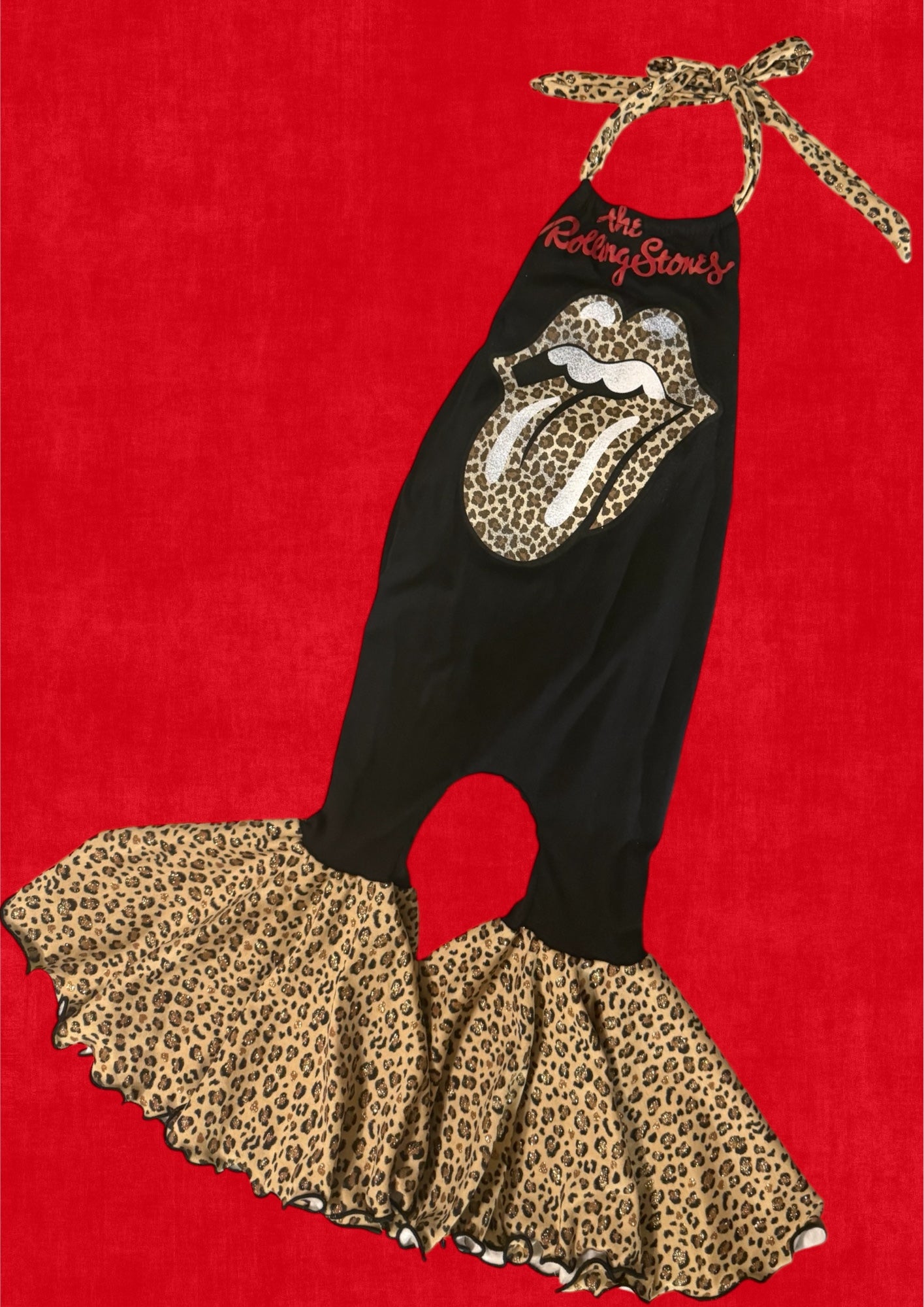 This adorable halter bell romper is handmade from band tshirt and soft stretchy fabric. Available in size 12/18m